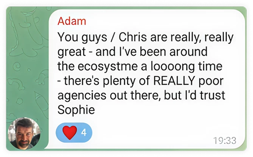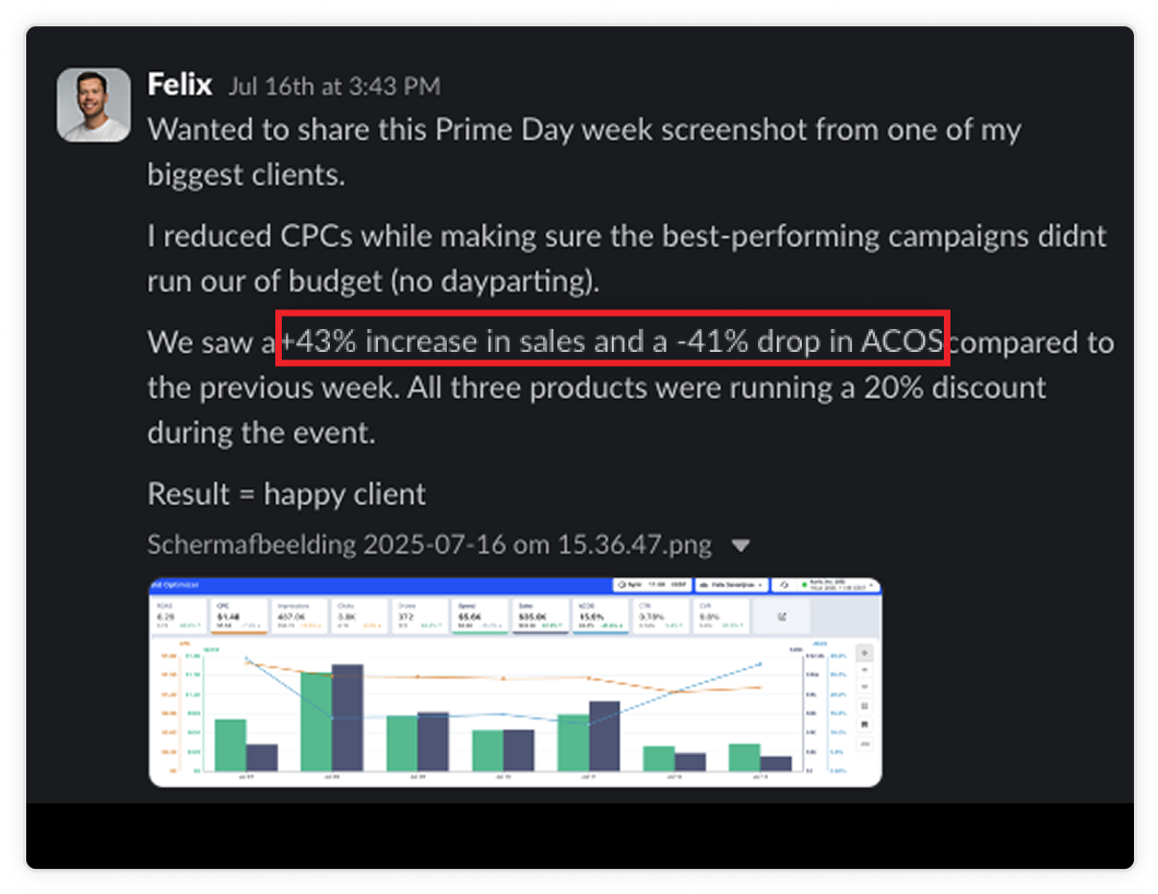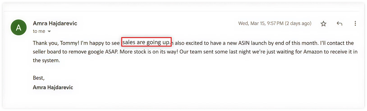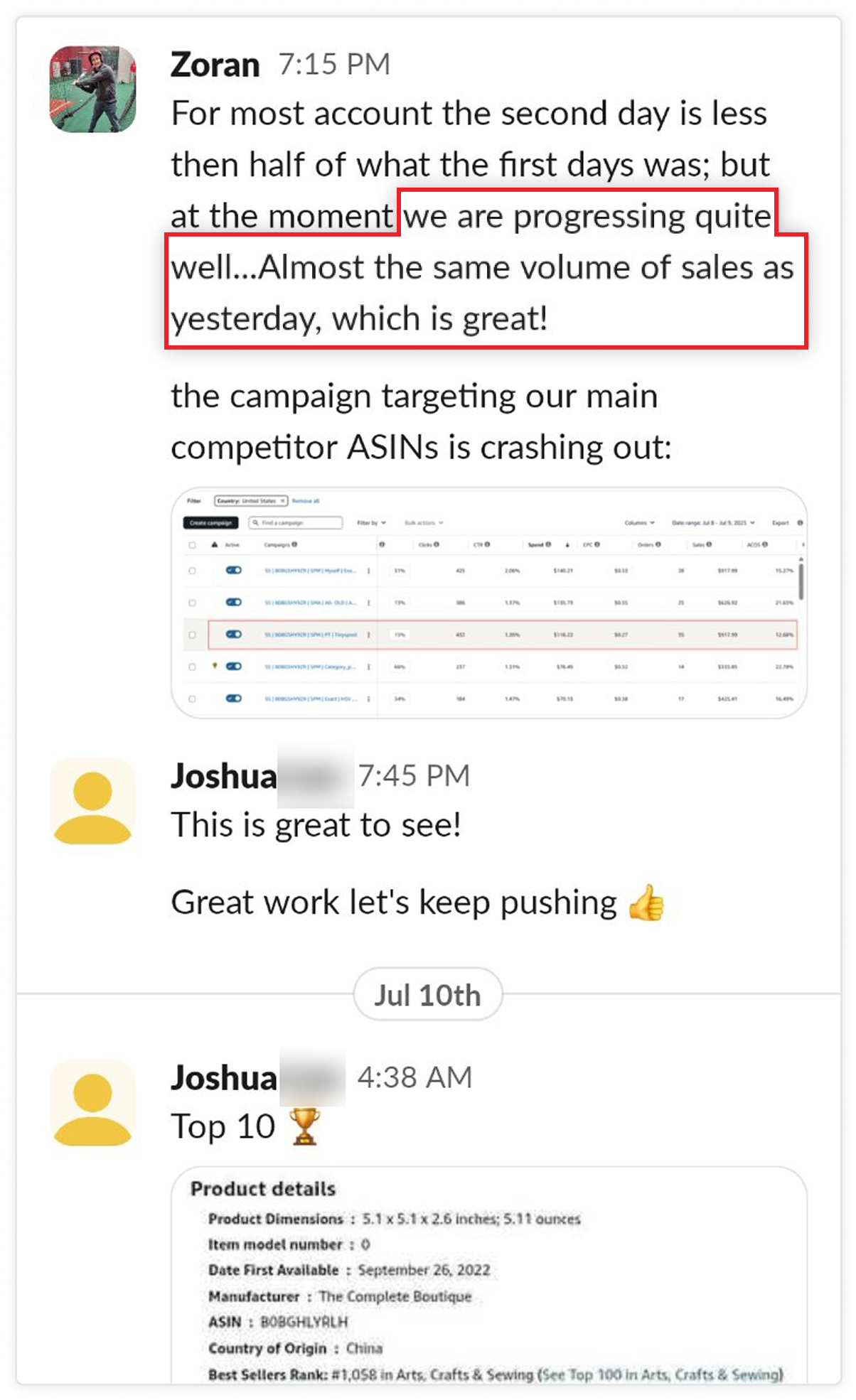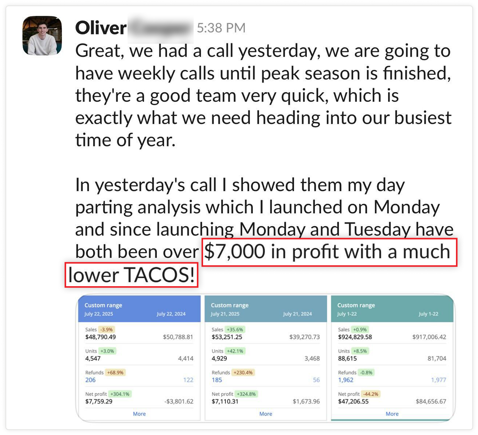 The brand is now back on track for growth with consistent performance, strong margins, and a trusted strategist (Pablo) leading the way. Robert was more than satisfied with the performance and now refers other Amazon sellers he knows to Sophie Society.